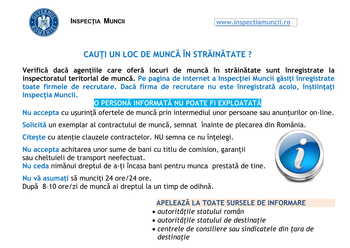 INFORMĂRI CU PRIVIRE LA DREPTURILE, OBLIGAȚIILE ȘI RISCURILE MUNCII ÎN STRĂINĂTATE