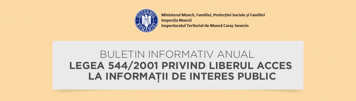 Conform art. 5 (2) din Legea nr. 544/2001, autoritățile și instituțiile publice au obligația să publice și să actualizeze anual un buletin informativ care va cuprinde informațiile de interes public. Ne dorim ca acest buletin informativ să constituie o sursă reală de informare pentru toate persoanele interesate.