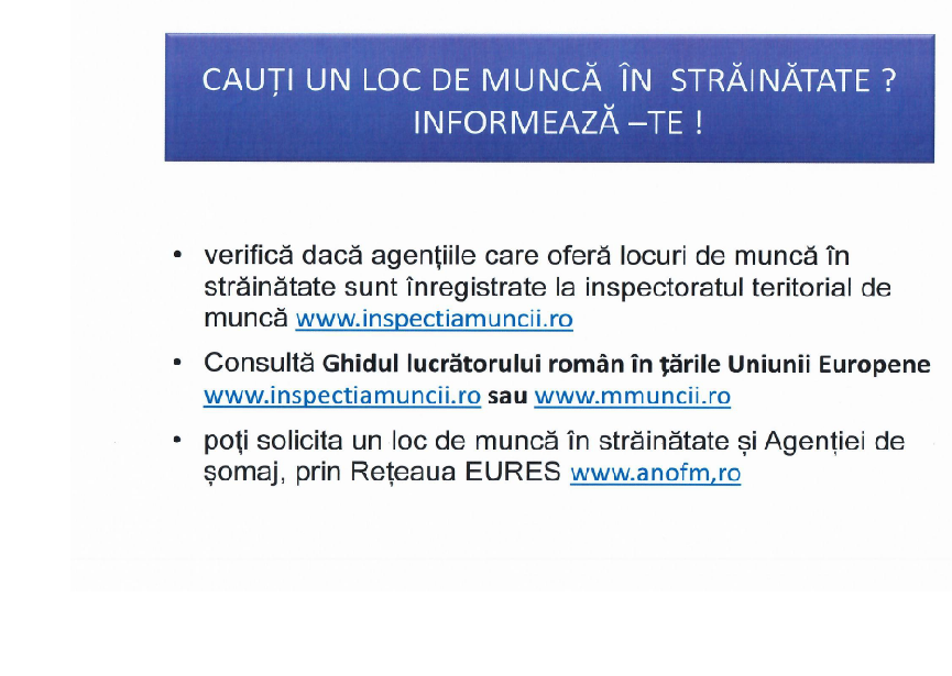 Materiale informative despre drepturi, obligatii si riscuri in demersul de cautare a unui loc de munca in strainatate