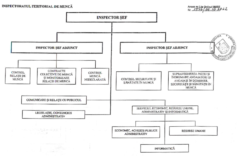 Ordinul ministrului muncii și solidarității sociale nr. 1956/2022 pentru aprobarea structurii organizatorice pentru aparatul propriu al Inspecţiei Muncii, a Inspectoratului Teritorial de Muncă Bucureşti şi a Inspectoratelor Teritoriale de Muncă